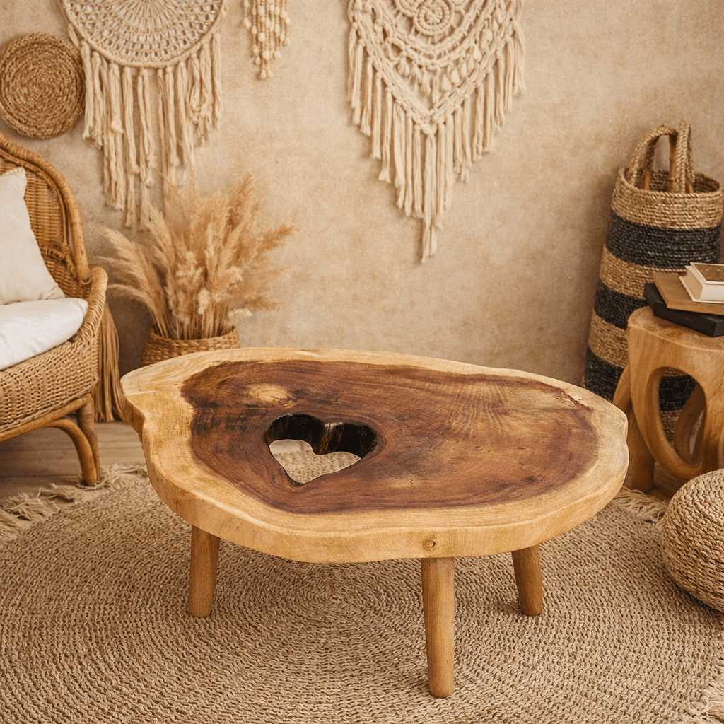 Piรจce dโexception rรฉalisรฉe ร Bali, la table basse Laksmi associe la noblesse du bois de suar massif ร la finesse dโune sculpture artisanale. Son plateau encastrรฉ en verre met en valeur chaque dรฉtail sculptรฉ ร la main. รlรฉgante et intemporelle, elle sublime votre salon avec une touche dโart balinais authentique.