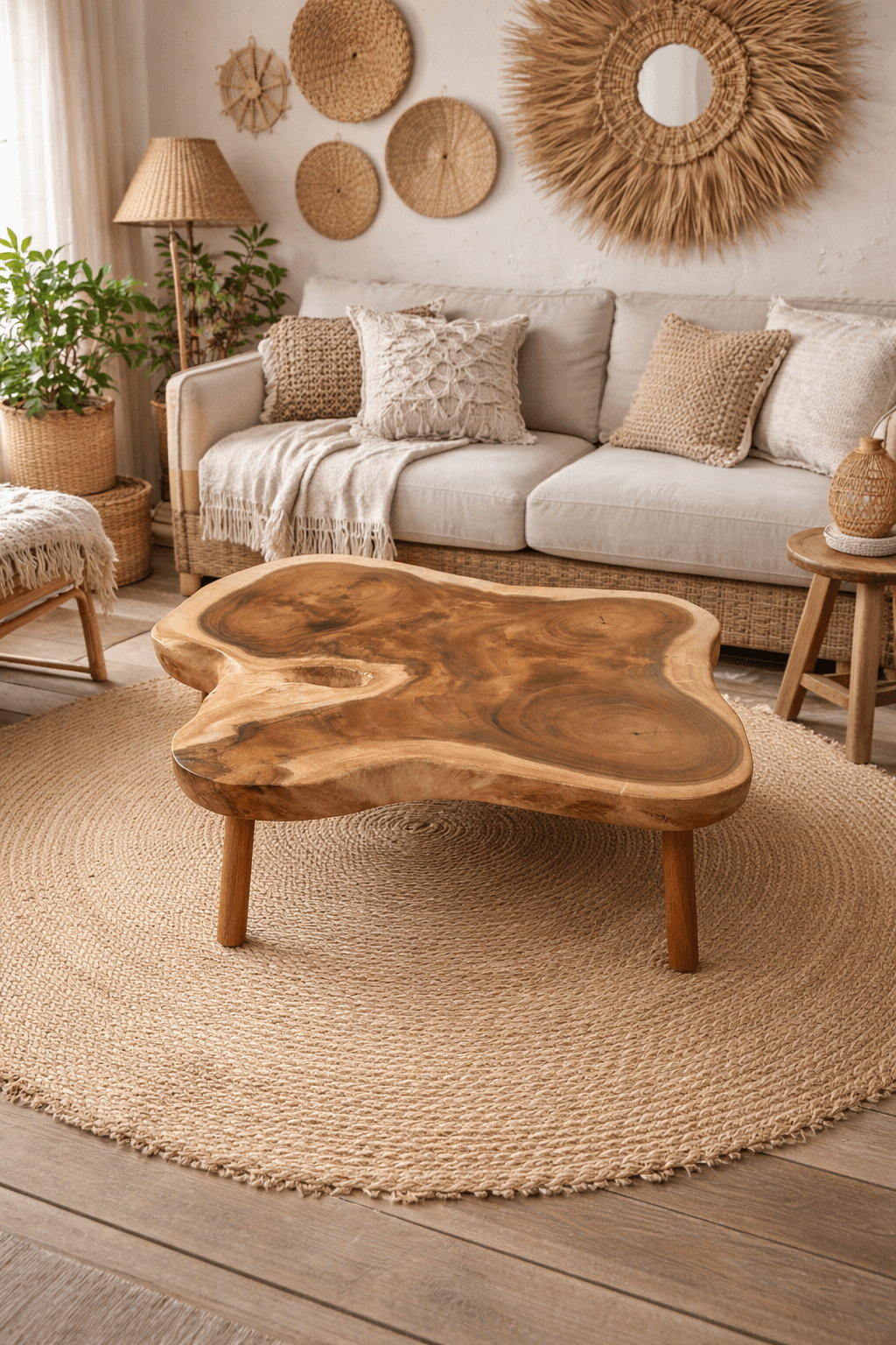 Fabriquée artisanalement à Bali, cette table basse en bois de suar massif est une pièce de caractère. Son plateau aux lignes organiques raconte l’histoire du bois, sublimée par une finition huilée qui révèle toute sa beauté.